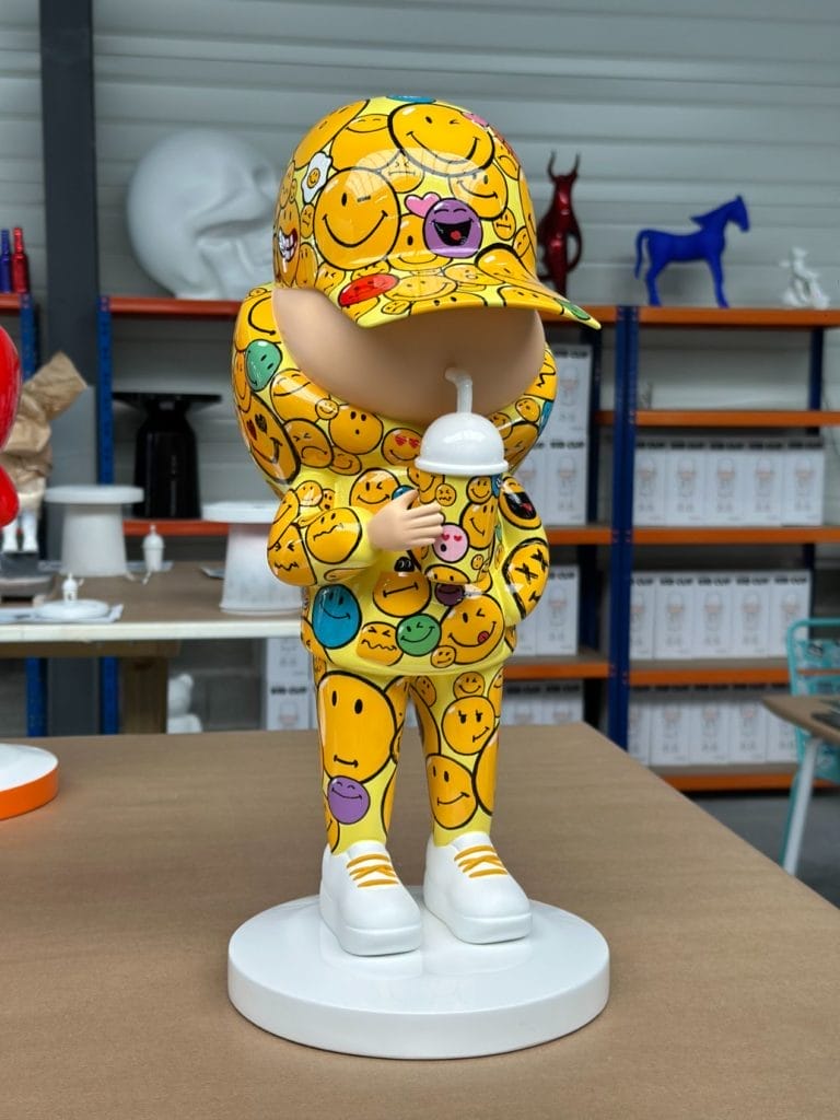 Ce personnage universel, à mi-chemin entre l’art contemporain et l’illustration, a conquis les esprits et les cœurs, traversant les frontières avec une aisance déconcertante. De Paris à Tokyo, des galeries aux hôtels les plus prestigieux, Kid Cup s’invite partout, portant avec lui un message de liberté et de positivité.