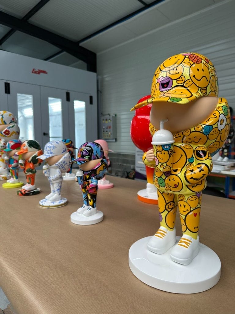 Il s’agit alors de transformer l’essai. Une galerie taiwanaise leur offre cette opportunité. première commande : 70 sculptures. Toutes différentes. Un travail colossal que le duo honore fièrement. Il s’agit alors pour Léo & Steph de se structurer et de s’organiser. Quatre investisseurs, un atelier de prototypie, un atelier de création et la rencontre avec ColorMaker en région nantaise.