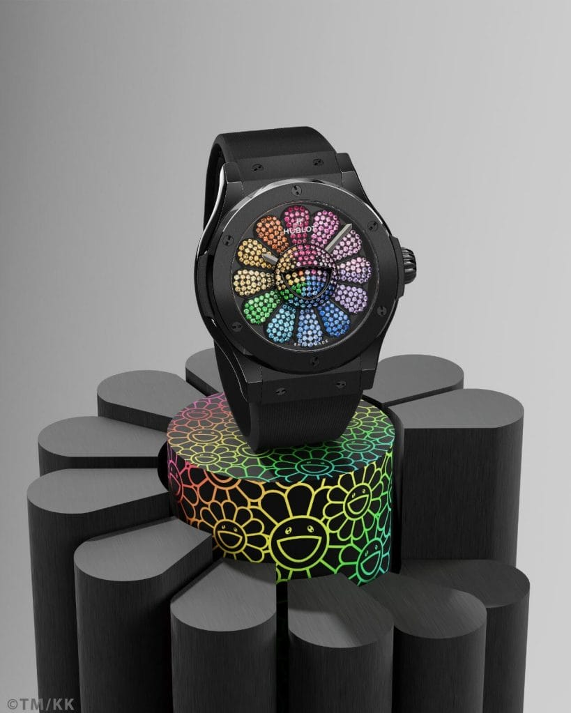 Dans le cadre de leur nouvelle collaboration, Hublot et Takashi Murakami présentent treize nouveaux NFT et treize garde-temps uniques ornés de la fameuse fleur souriante, l’icône de l’oeuvre de l’artiste japonais.