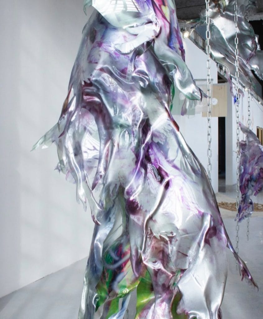 Ce n’est pas la première fois que Darmo Art travaille en lien étroit avec le monde de la mode. Lors de son exposition Symbioses, Alexis et Marius ont collaboré avec la créatrice espagnole Maria Bernad (Instagram: @maria_bernad) et ont réalisé avec elle son premier défilé. Forte de cette opportunité, la créatrice a pu développer sa marque et a même lancé une plateforme multi-marques éco-responsable.